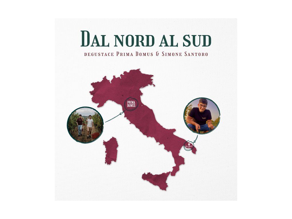 Dva vinařské příběhy, dvě části Itálie, jeden večer. Přijď objevovat kontrast severu a jihu v doprovodu vinařů Prima Domus a Simone Santoro, s tlumočením do češtiny a chuťovým párováním od Marca Giampaoliho.