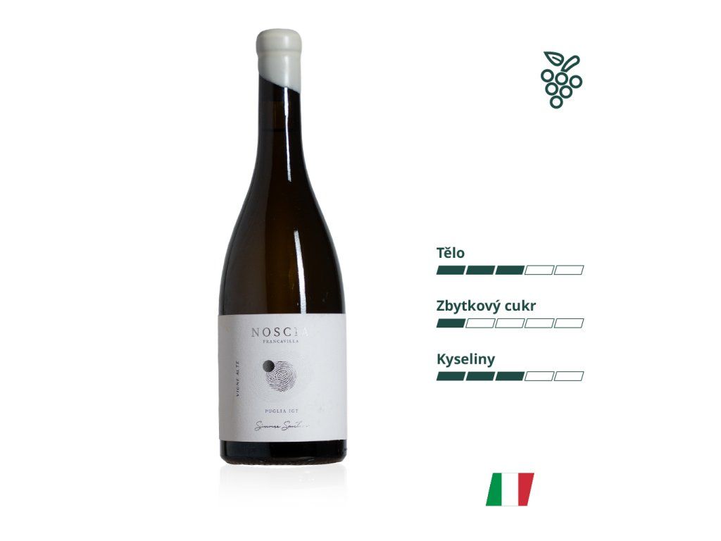 Francavilla Vigne Alte je exkluzivní limitovaná edice postavená na vzácné autentické odrůdě Francavilla. Oproti klasické bílé variantě jde o hlubší, serióznější a strukturovanější projev, který spojuje svěžest odrůdy s jemným dotekem dřeva a krémovostí zrání na kalech.
